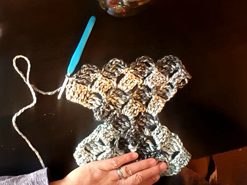 Then you just continue making boxes until you have a row of 5 boxes. You’ll start decreasing as before until your next heart is complete.